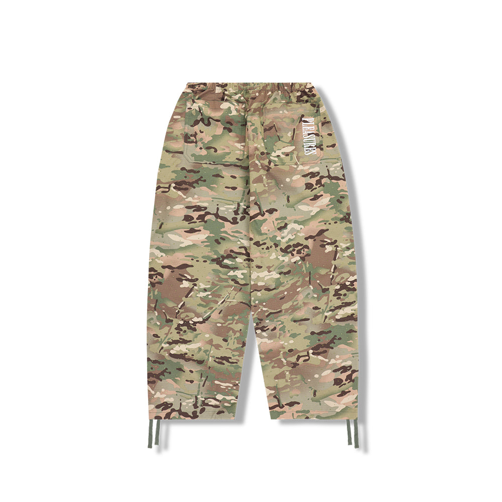 Wide Leg Camo Pants• 90% Cotton / 10% Polyester Ripstop Glittered Camo• Knee Darts• Embroidery• Adjustable Leg Opening