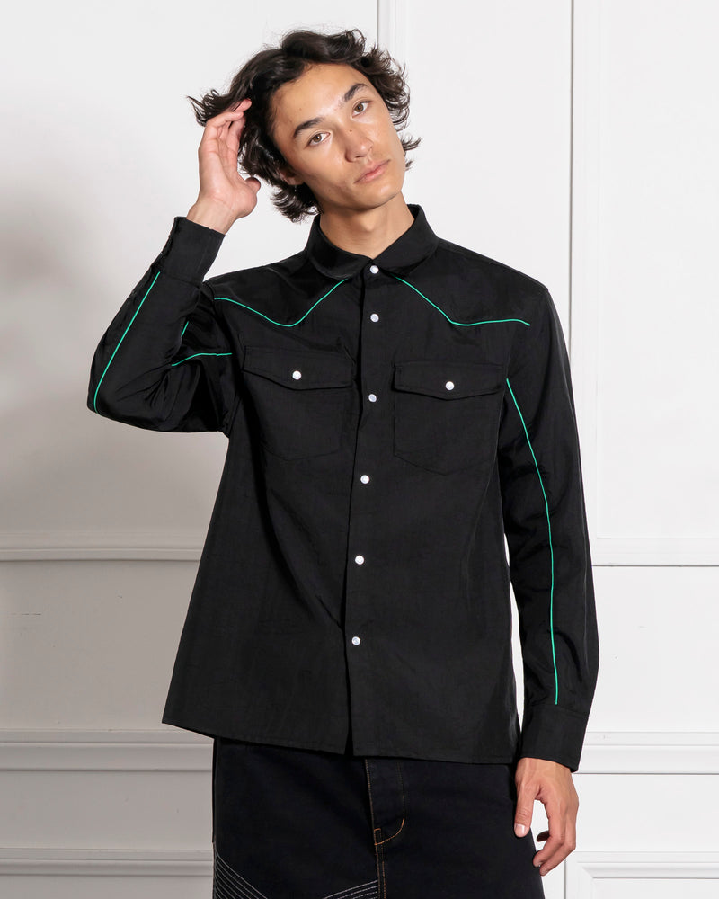 Nylon Western Button Up - Black